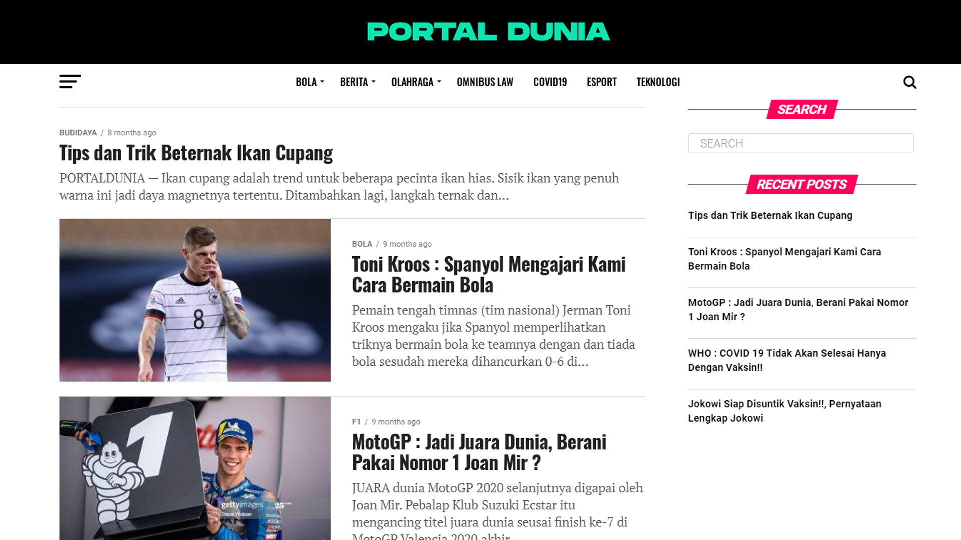 Portal Dunia adalah website yang menyajikan berita up to date dari seluruh dunia. Mulai dari informasi kesehatan, sepak bola, politik, dan sebagainya