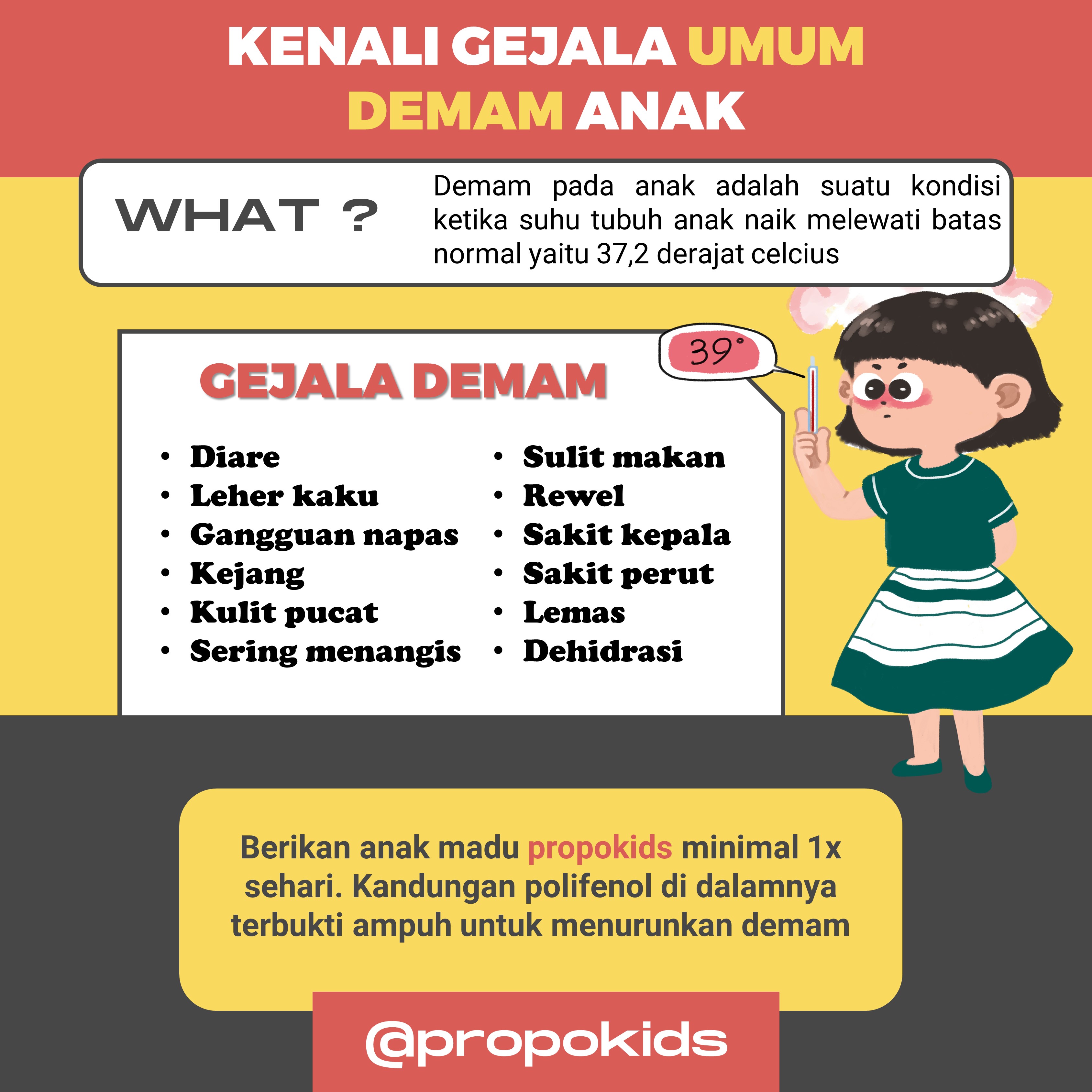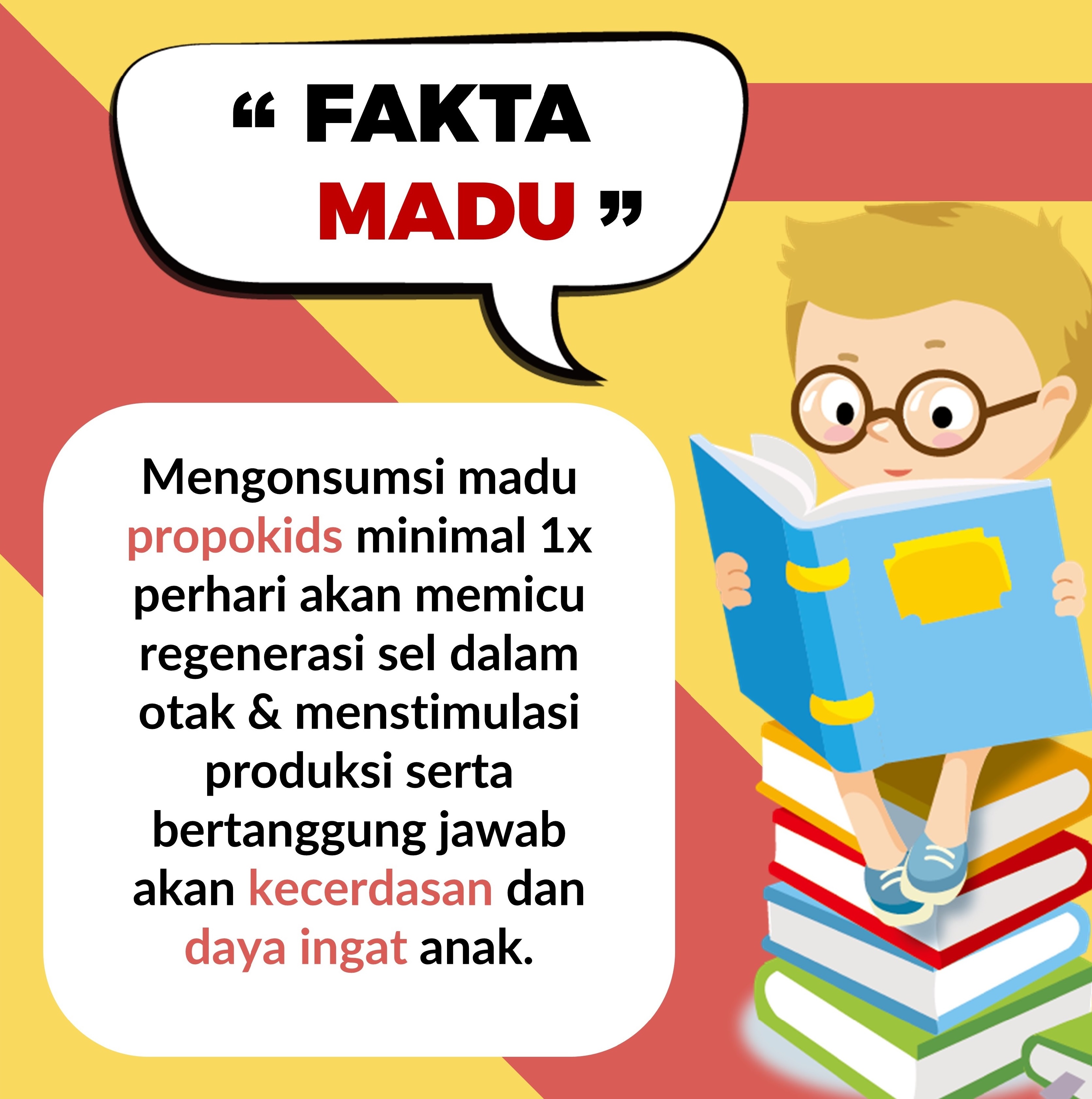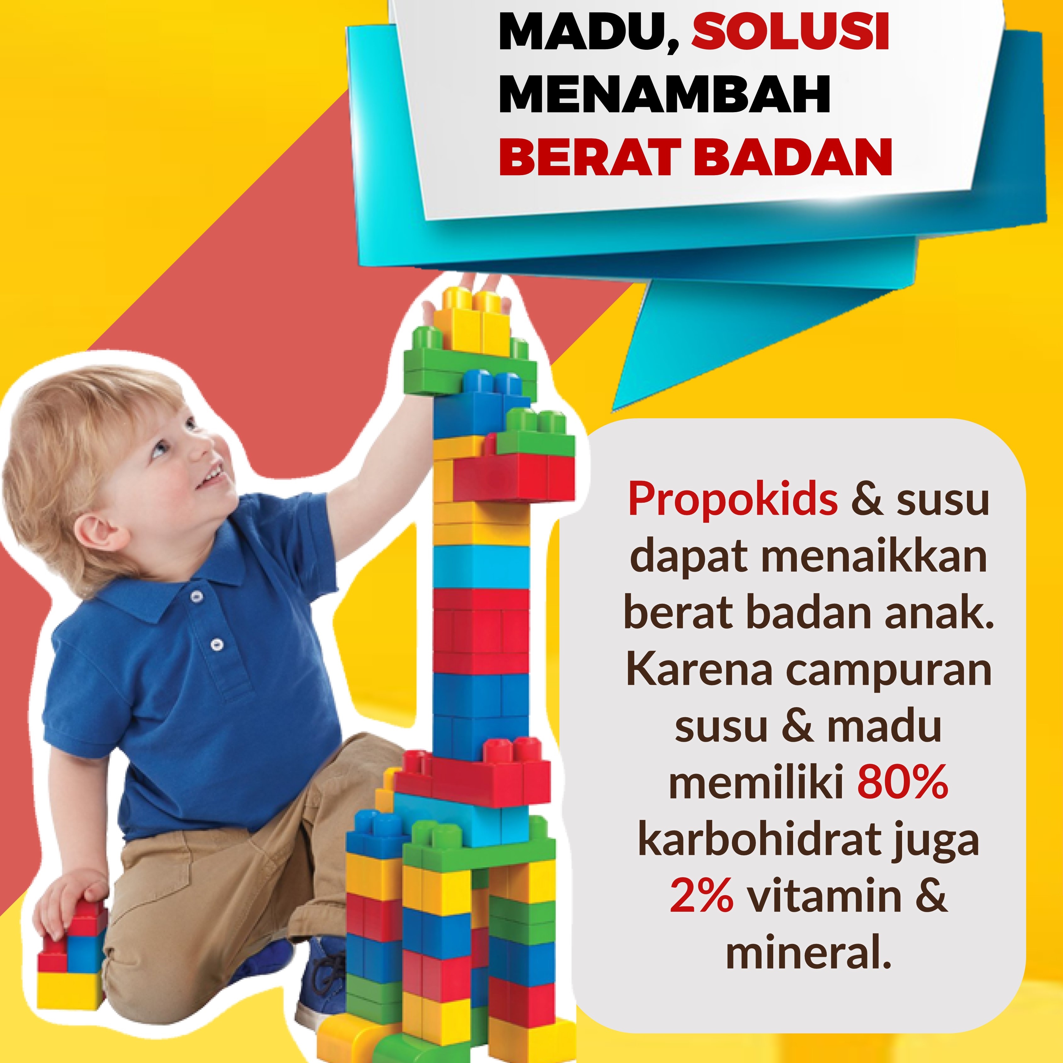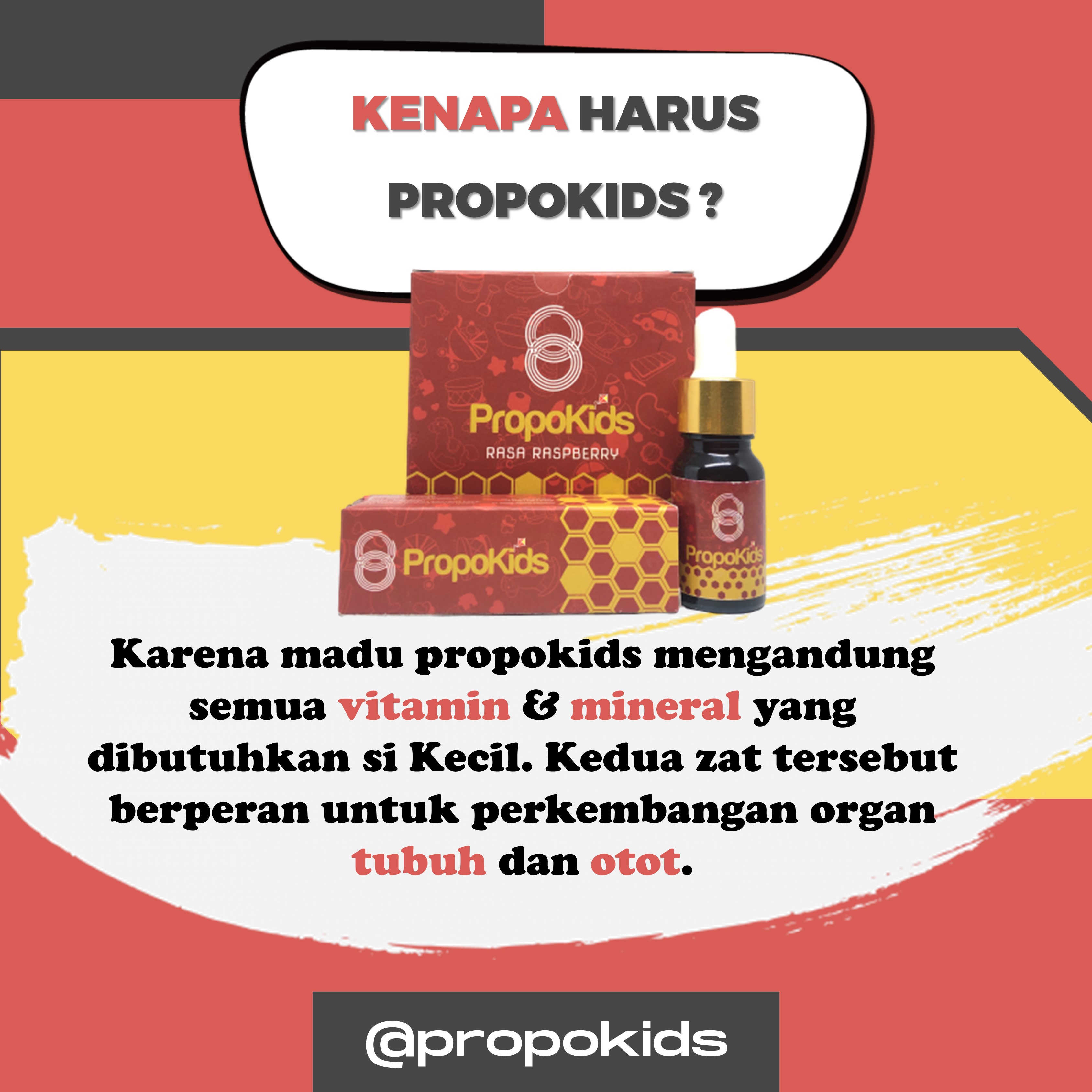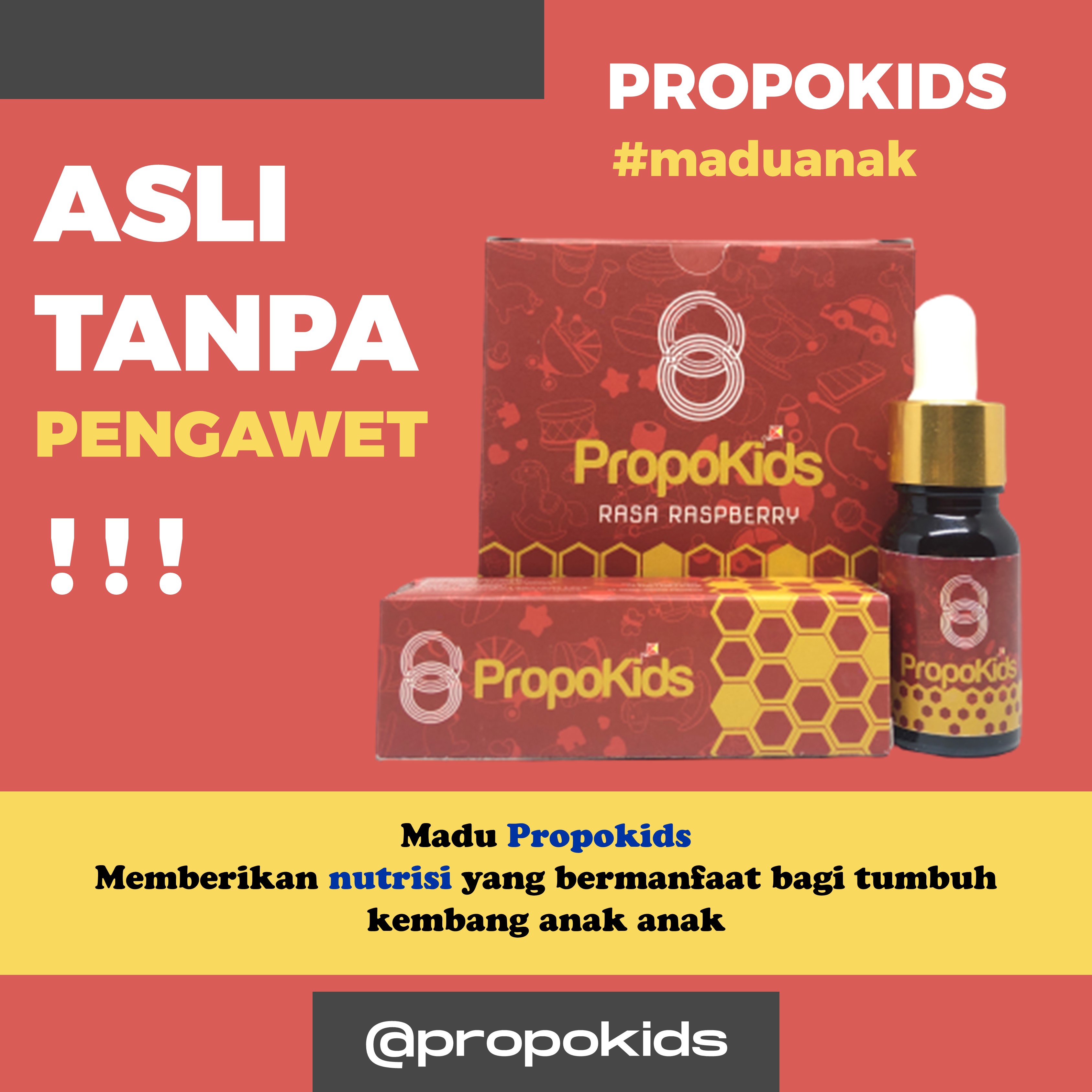 Propokids adalah vitamin anak yang terbuat dari bahan baku utama madu murni. Berkhasiat untuk menambah nafsu makan anak dan mengurangi batuk pilek pada anak.