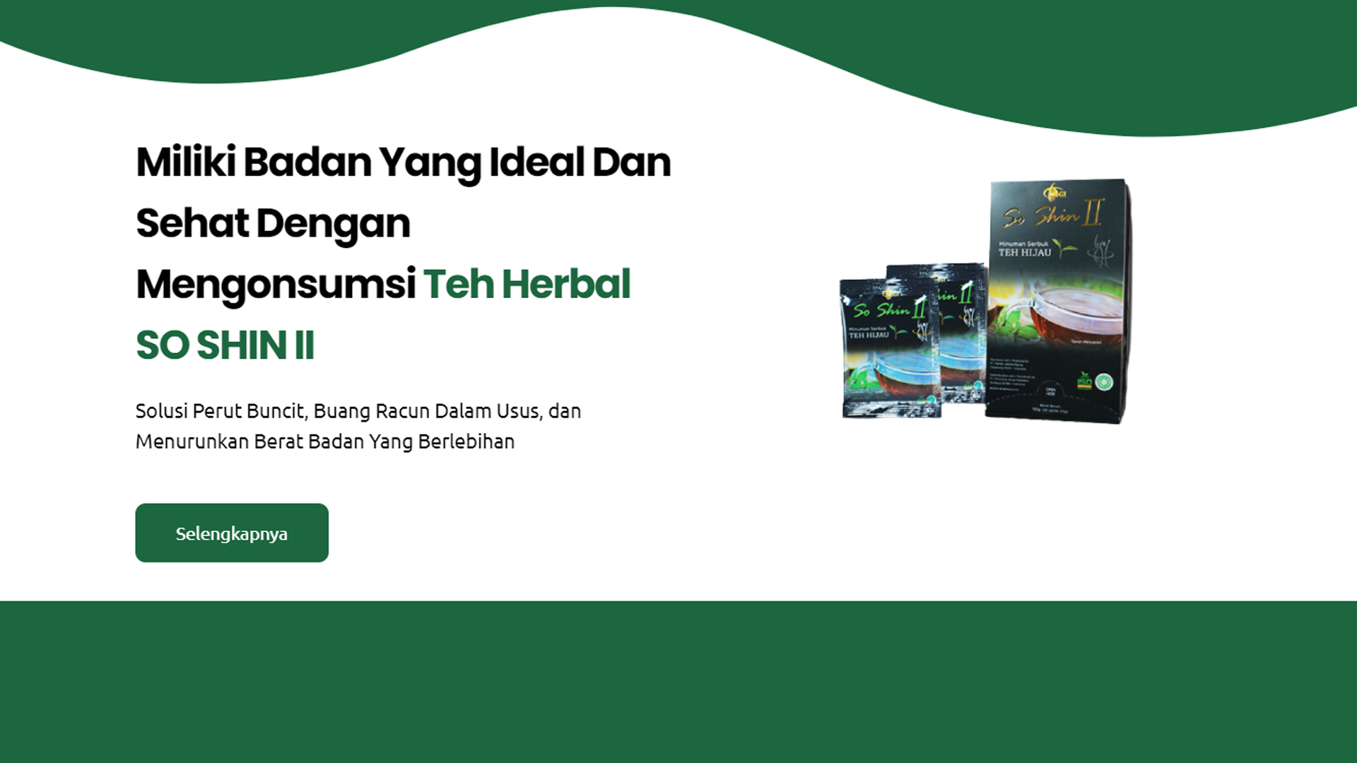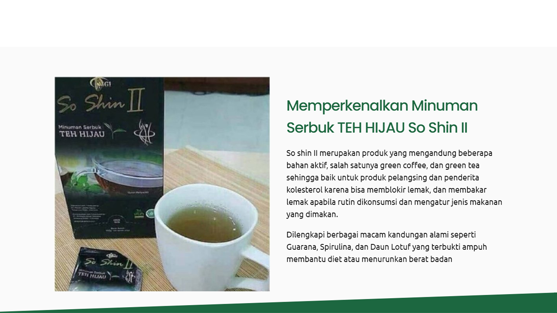 Teh So Shin adalah minuman serbuk teh hijau yang berfungsi sebagai solusi perut buncit, buang racun dalam usus, dan menurunkan berat badan yang berlebihan